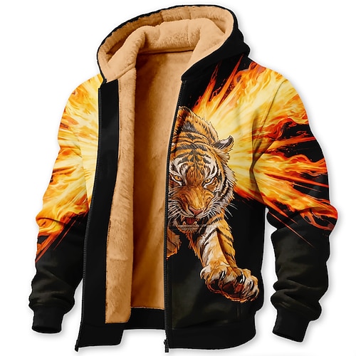 Per uomo Tigre 3D Pile Felpa con Cappuccio Giacca di pelle Felpa Classico Da caccia Manica Lunga Girocollo All'aperto Campeggio Giallo scuro Nero 1 Nero Nero 2 Con zip Autunno Inverno progettista S M