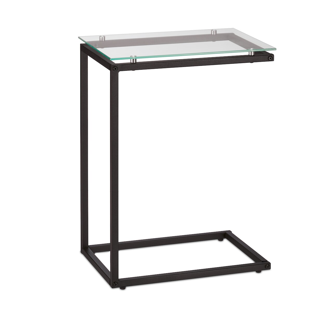 Relaxdays Beistelltisch, U-Form, Glas Tischplatte, Metall, Bauhausstil, Konsolentisch HxBxT: 61 x 30 x 45 cm, schwarz