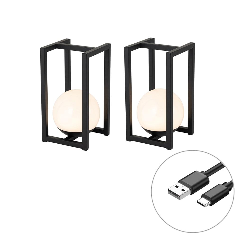 Set 2 lampade tavolo esterno nere ricarica touch