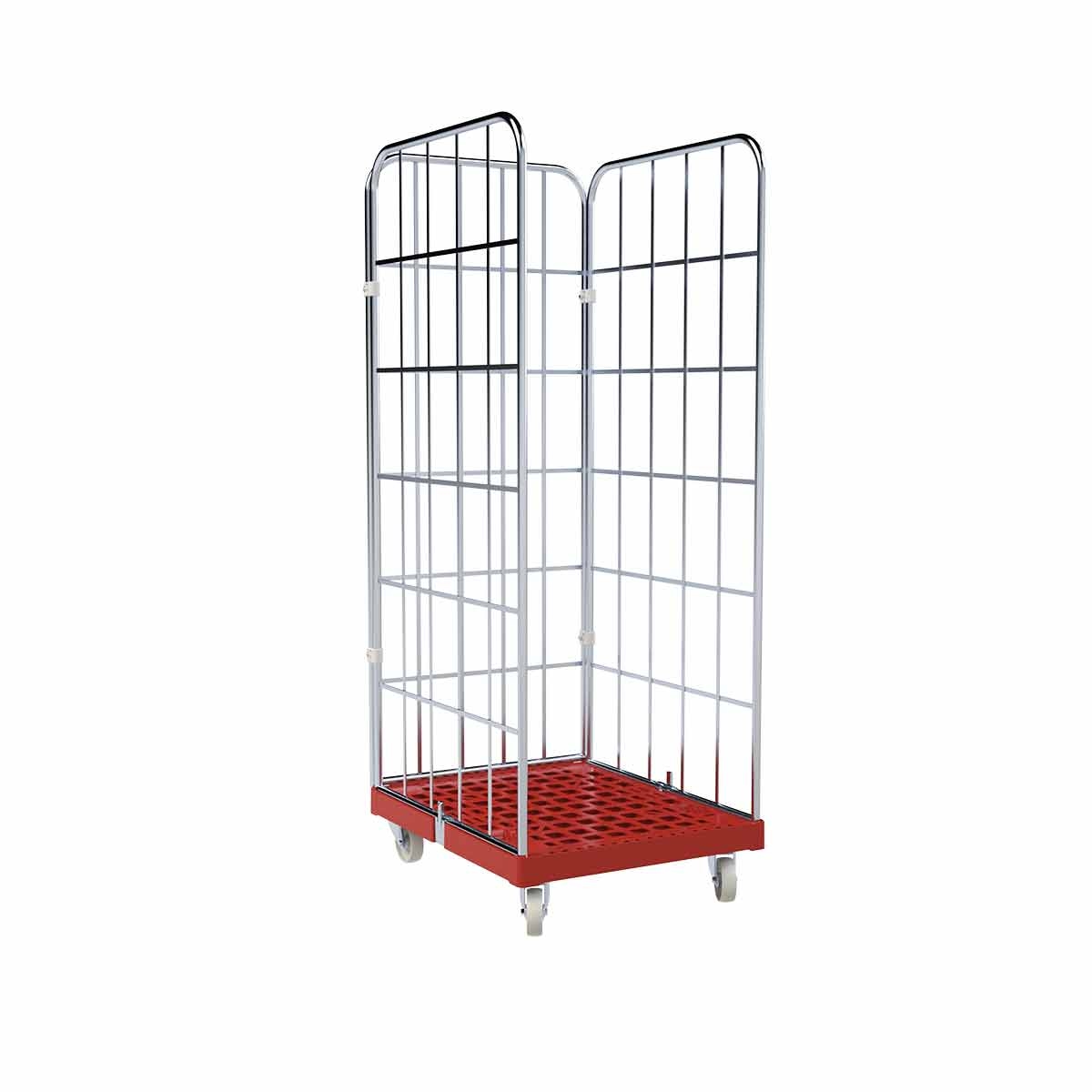 Oswald Transportgeräte Rollbehälter Euronormkisten, 3-seitig, Rollplatte aus Kunststoff, 682 x 825 x 1.830 mm, 500 kg, Nutzhöhe 1.640 mm, Feuerrot