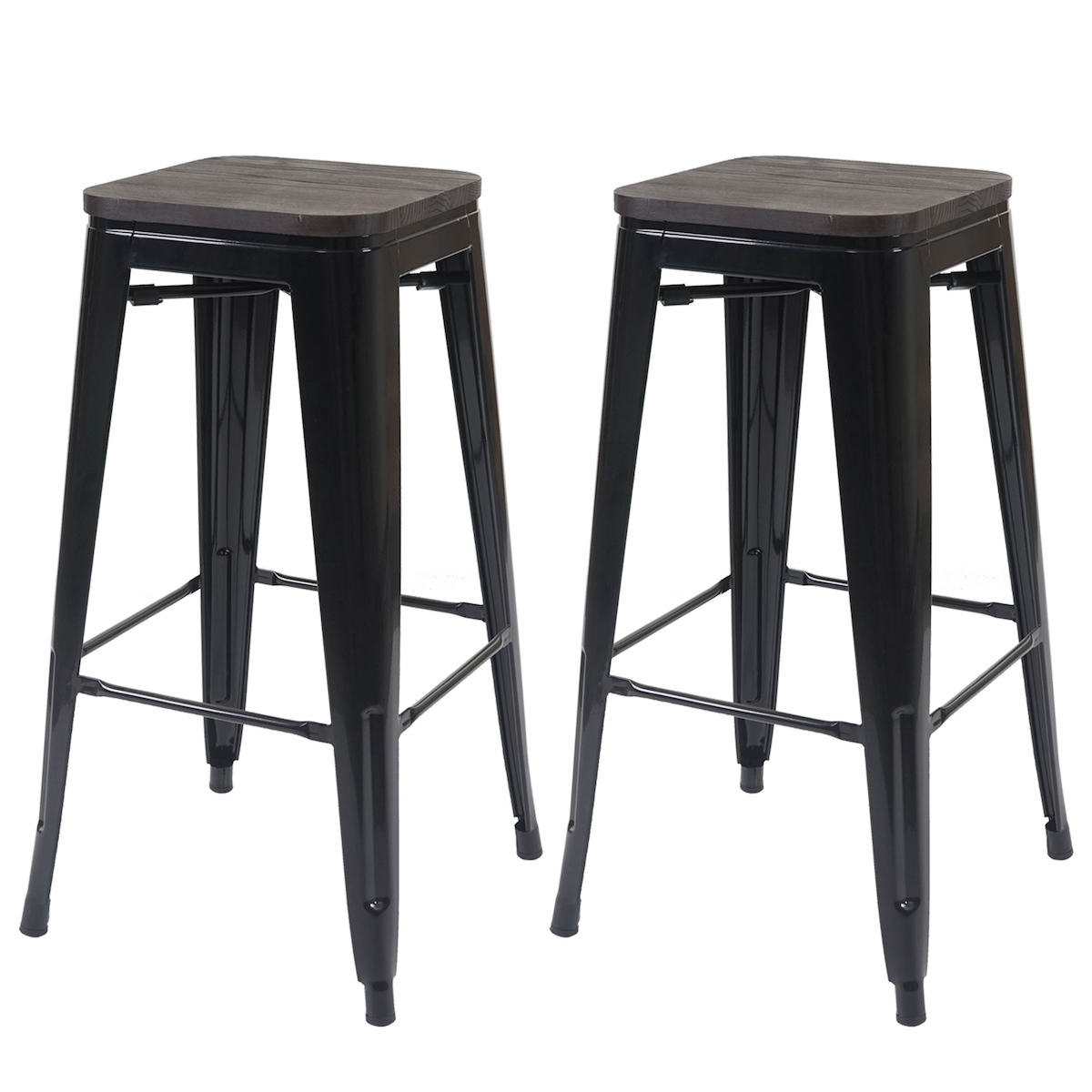 Mendler 2er-Set Barhocker HWC-A73 inkl. Holz-Sitzfläche, Barstuhl Tresenhocker, Metall Industriedesign stapelbar ~ schwarz