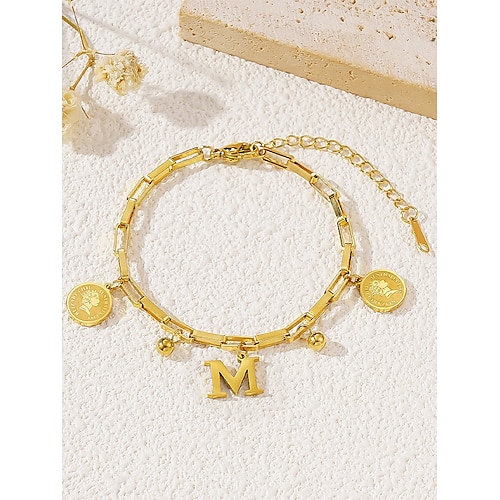 Bracciale da donna placcato in oro con lettere dell'alfabeto, ciondoli a forma di moneta e pallina, catena regolabile, elegante regalo di Natale per lei, accessorio di gioielleria personalizzato