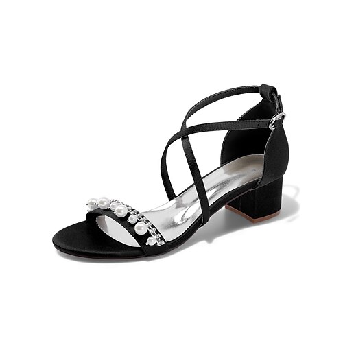 sandali da sposa con tacco a blocco decorati con perle da donna: elegante design con cinturini per spose moderne per matrimoni chic in città