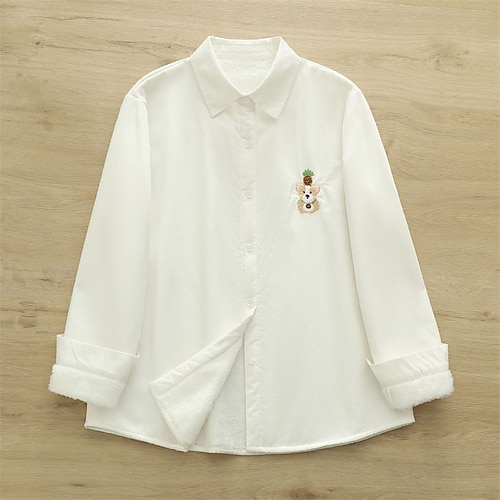 Per donna Camicia Animale Gatto Attivo Quotidiano Elegante Manica Lunga Colletto a Camicia Top Regolari Quotidiano Ferie Bottoni Stampato Blu Bianco Primavera Autunno