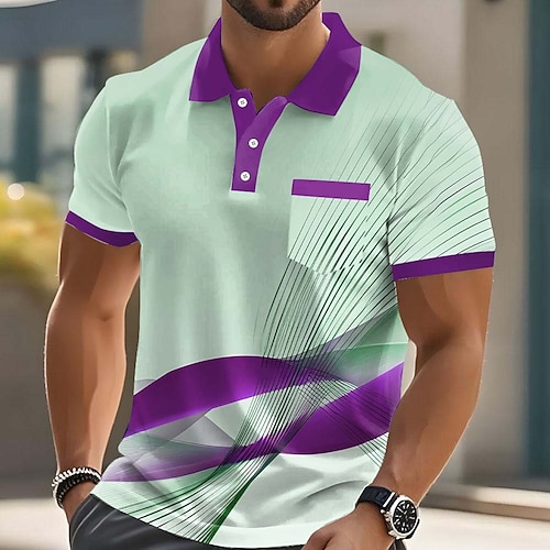 Per uomo Geometrico Polo Manica Corta Magliette polo Camicie con Colletto Business Casual Athleisure Bottoni Estate Nero Blu Marrone