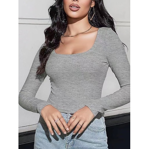 Per donna Camicia Blusa Tinta unica Vintage Elegante Classico Manica Lunga Girocollo Top Regolari Quotidiano Nero Rosso Blu marino Blu Cachi Primavera Autunno