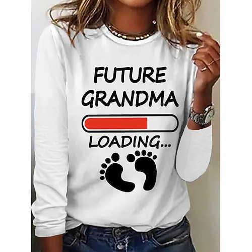 Natale Per donna Maglietta Grafico Animale Lettera Vintage Moda Elegante Manica Lunga Girocollo Top Regolari Quotidiano Weekend Stampato Blu Nero Bianco Rosa Verde Primavera Autunno