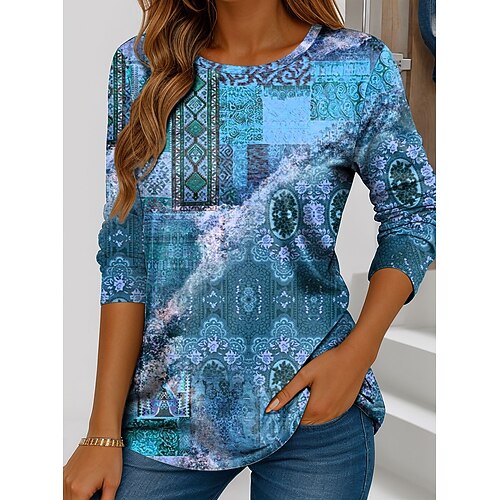 Maglietta donna manica lunga scollo rotondo maniche lunghe tunica floreale grafica paisley vintage elegante classica top regolari quotidiani weekend stampa rosa blu viola preautunno