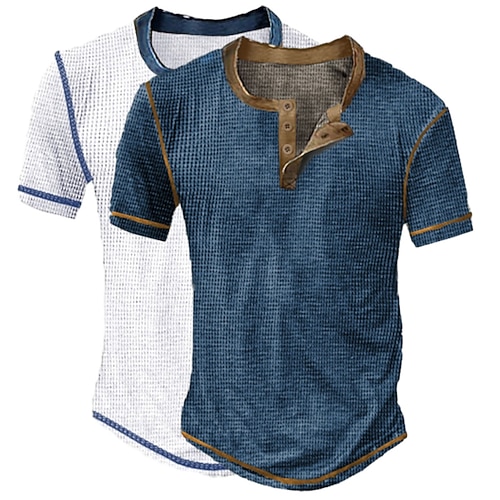 Per uomo Maglia Henley a nido d'ape Maglietta Manica Corta Tinta unita Moda Designer Casual Bottoni Confezione multipla Henley All'aperto Casuale Quotidiano Estate Brown giallo Blu scuro / Blu
