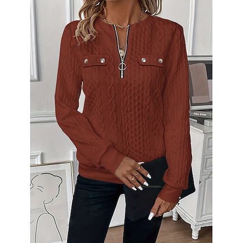 felpa da donna tinta unita elegante casual quotidiano manica lunga girocollo scollo a V top normali quotidiano vacanza tasca marrone bianco rosa blu primavera autunno inverno primavera, autunno,