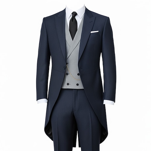 Uomo matrimonio invernale Palcoscenico Smoking Bavero classico Blu scuro Festa Retrò Vintage Tinta unita Vestibilità aderente 3 pezzi Monopetto a un bottone