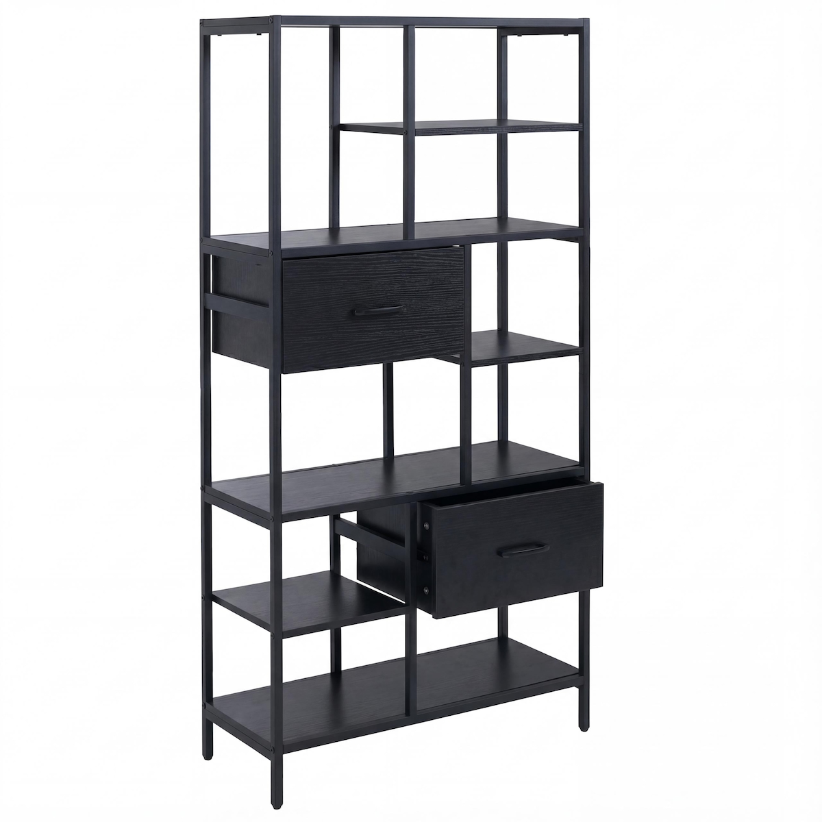 Mendler Regal HWC-P11, Regalschrank Bücherregal Standregal, Schubladen Industrial MDF Metall Melamin 150x81x33cm ~ schwarz