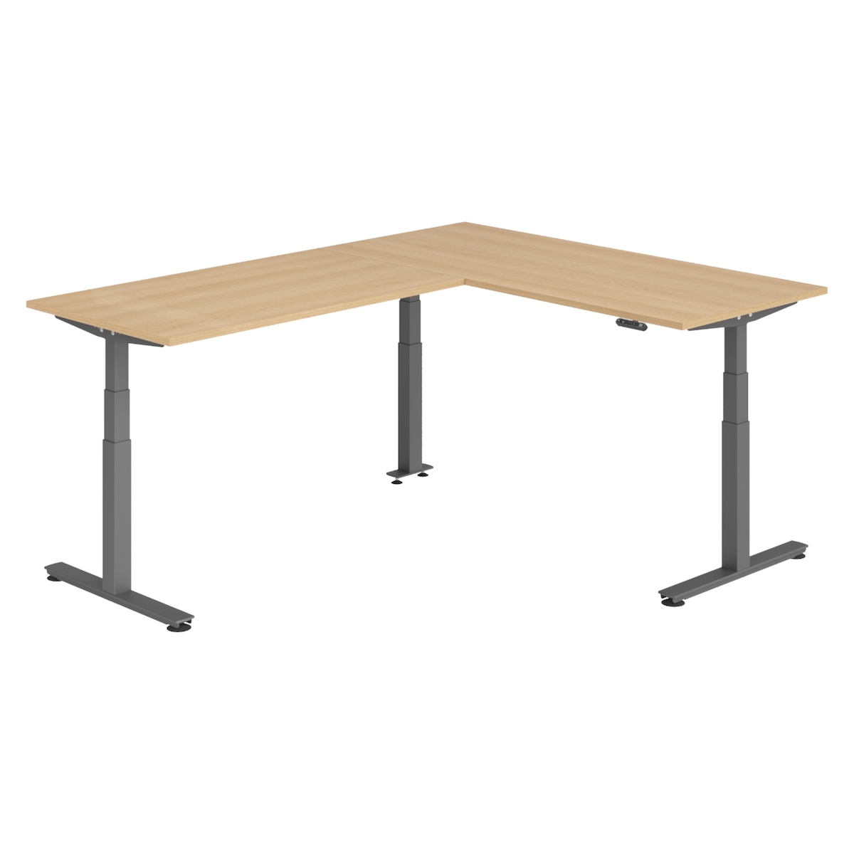 bümö Eckschreibtisch elektrisch höhenverstellbar L-Form: 180 x 200 cm in Eiche, Gestell graphit - Stehschreibtisch mit Memory-Steuerung, elektrischer