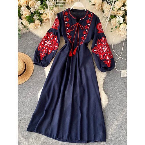 Per donna Abito Midi Abito a trapezio Casual All'aperto Uscire Vestibilità standard Floreale Grafico Manica 3/4 Scollo a V Nero Bianco Rosso Primavera Autunno