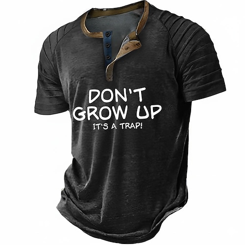 Per uomo Gergo divertente Maglia Henley T-shirt Raglan Manica Corta Moda Designer Casual All'aperto Vacanza Casuale Estate Tutte le stagioni Nero Blu Grigio Cachi Colletto Henley Henley Maglietta
