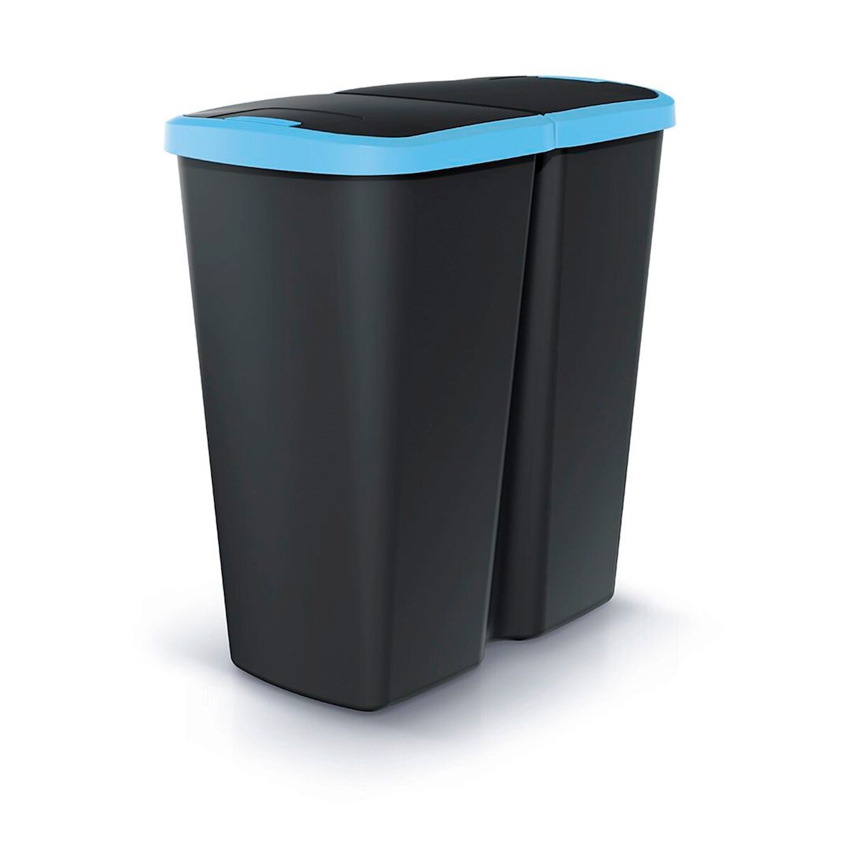 Keden Compact Q duo Mülleimer 45L mit 2 unabhängigen Deckeln in Schwarz und Blau
