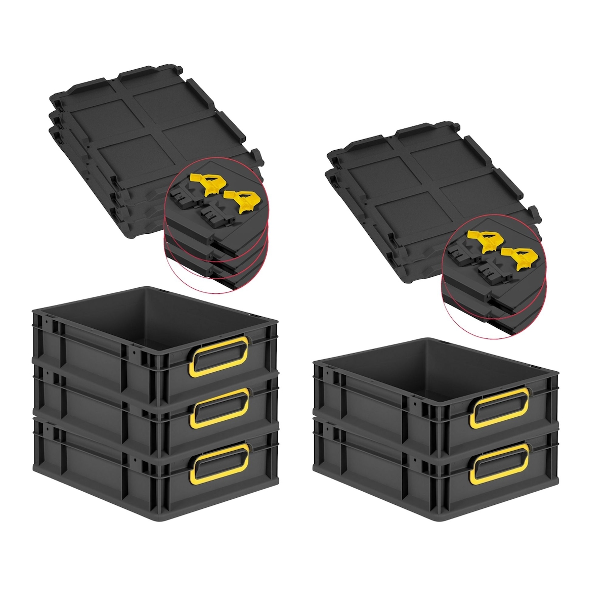 PROREGAL SuperSparSet 5x Eurobox NextGen Color mit Scharnierdeckel & Verschlüssen, HxBxT 12x30x40cm, 11L, Schwarz, Griffe gelb zu, Eurobehälter