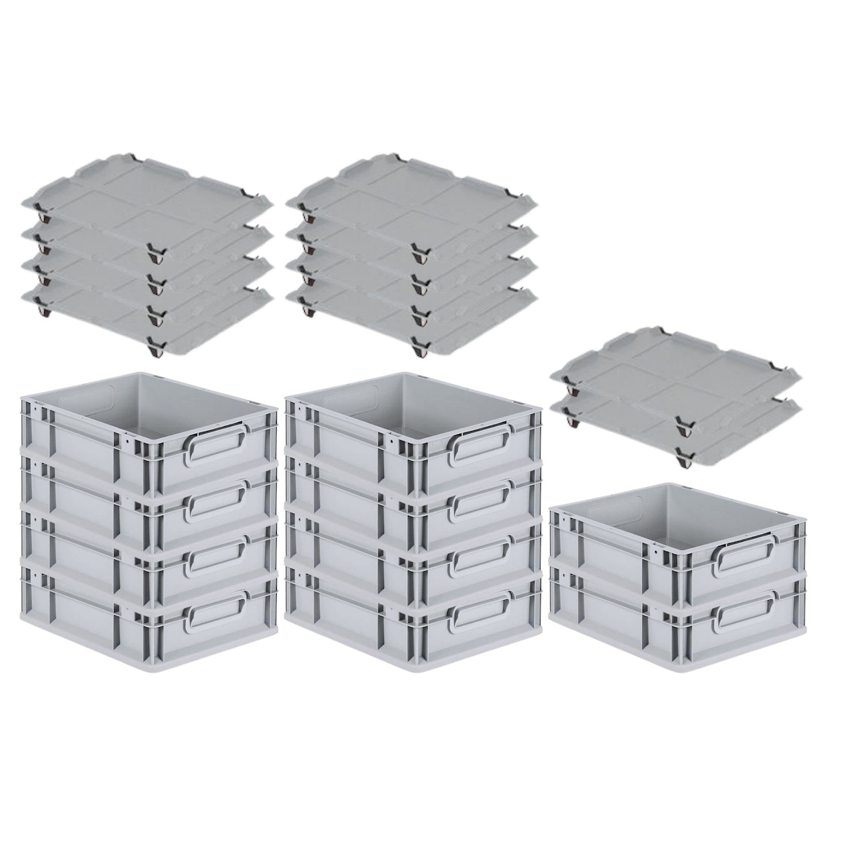 PROREGAL SparSet 10x Eurobox NextGen Grip mit Auflagedeckel & 4 schwarzen Verschlüssen, HxBxT 12x30x40cm, 11L, Grau, Griffe zu, Eurobehälter