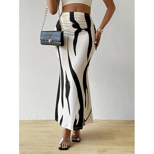 Per donna Gonna Aderente Moda Casual Maxi Vita Alta Gonne Floreale Stampato Elasticizzato Streetwear Quotidiano Blu Fucsia Albicocca Caffè Estate Poliestere