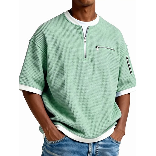 Da uomo Maglietta Waffle Maglietta Manica Corta Henley Estate Primavera Primavera Estate Tinta unica Moda Designer Casual Stratificato Finto due pezzi Casuale Quotidiano All'aperto Blu Verde chiaro