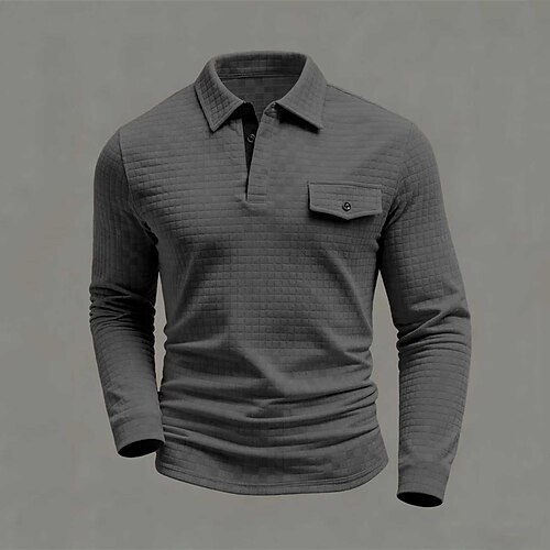 Per uomo Polo a nido d'ape Polo con bottoni Informale Sport Bavero Manica lunga Di tendenza Essenziale Color Block Pulsante Estate Standard Nero Bianco Blu reale Grigio scuro Polo a nido d'ape