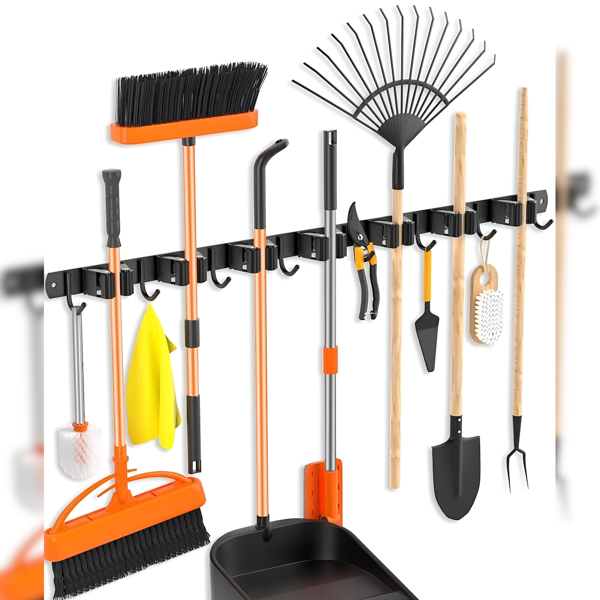 TOJ Living Werkzeughalter – 7 Halter & 8 Haken – 82 cm – Edelstahl – matt schwarz – Besenhalter