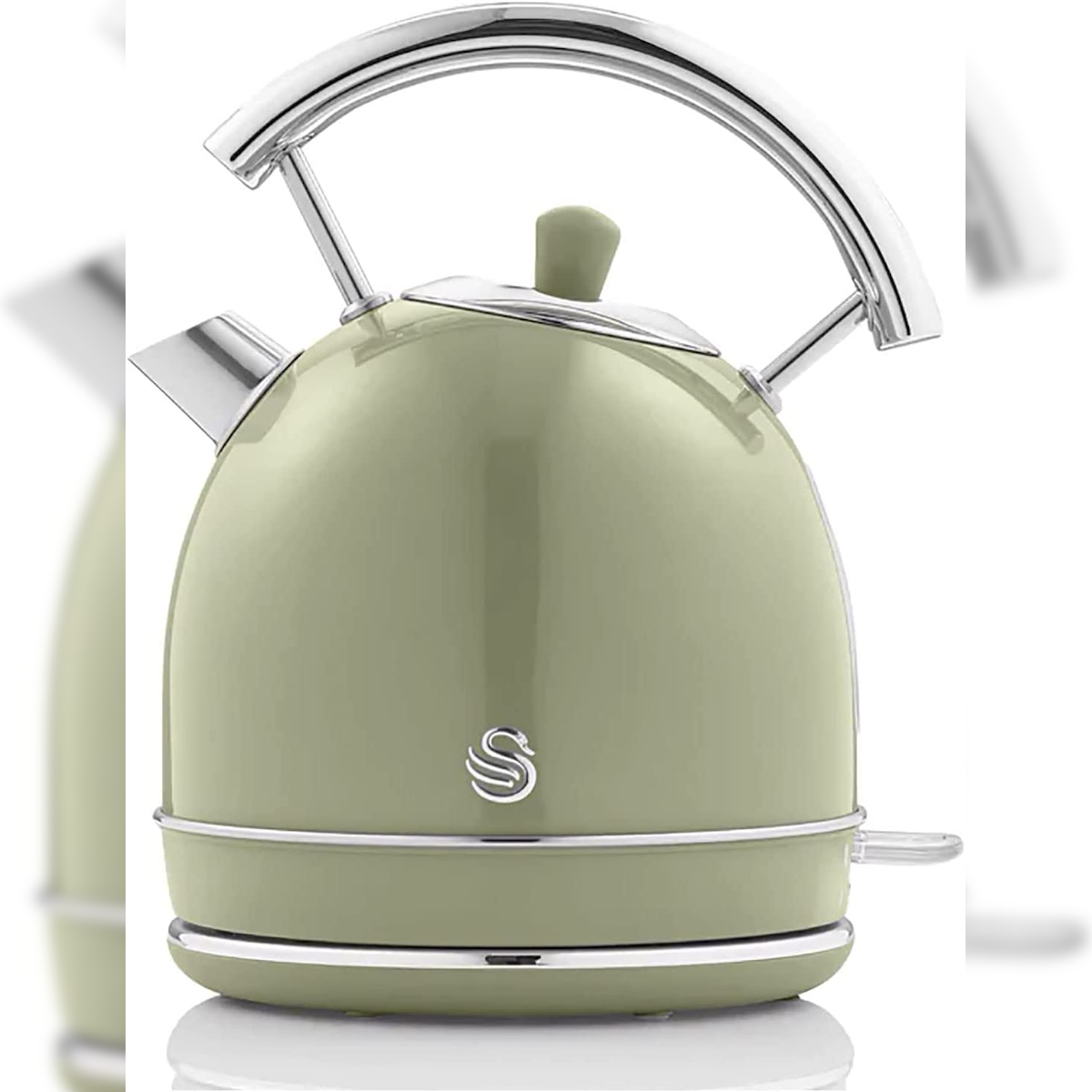 SWAN SK14630GNEU Retro Elektrisch Wasserkocher 1,8L Vintage Abschaltautomatik Kabellos, Edelstahl, Grün, 3000W