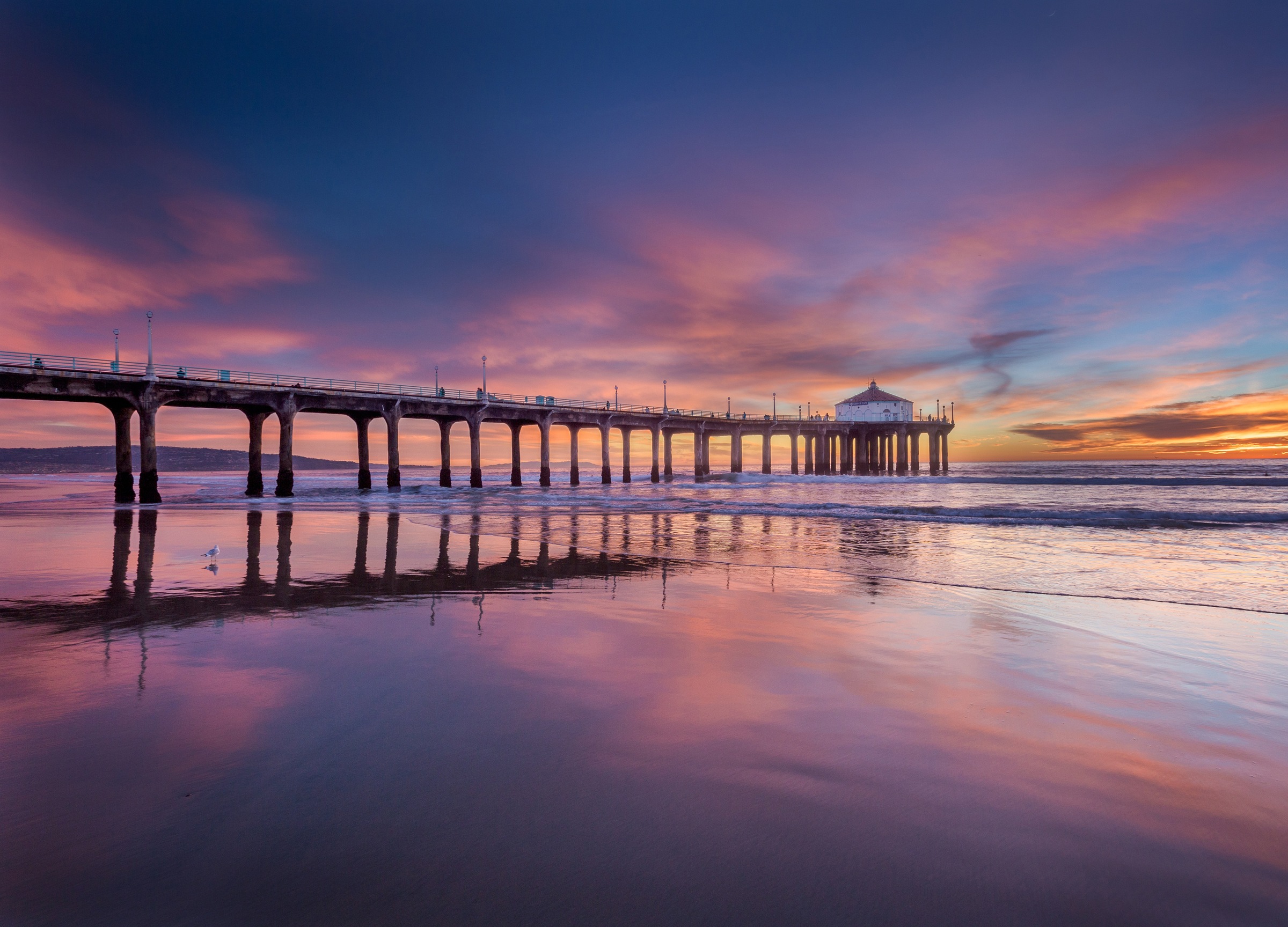 Fototapete PAPERMOON "Pier at Sunset", bunt (mehrfarbig), B:5m L:2,8m, Vlies, Tapeten