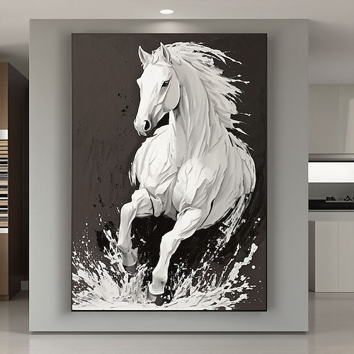 vivido cavallo bianco con sfondo nero dipinto acrilico animale verticale tela decorazione nero bianco grande dipinto a olio grande arte murale