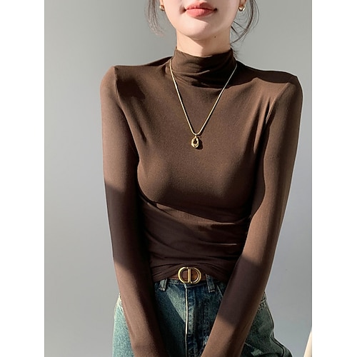 Per donna Blusa Tinta unica Elegante Casual Manica Lunga Dolcevita Top Regolari Quotidiano Nero Giallo Marrone Grigio scuro Albicocca Primavera Autunno Inverno