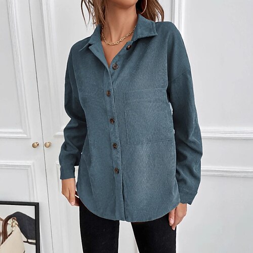 Per donna Camicia Blusa Semplice Elegante Manica Lunga Colletto a Camicia Top Regolari Ferie Uscire Bottoni Blu marino Primavera Autunno Inverno