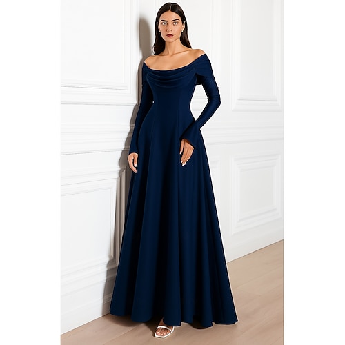 Linea ad A Lunghezza al pavimento Abito da Sera Da principessa Abito formale Elegante Setoso Manica Lunga Senza Spalle Matrimonio Formale Tasca Raso con Tasca