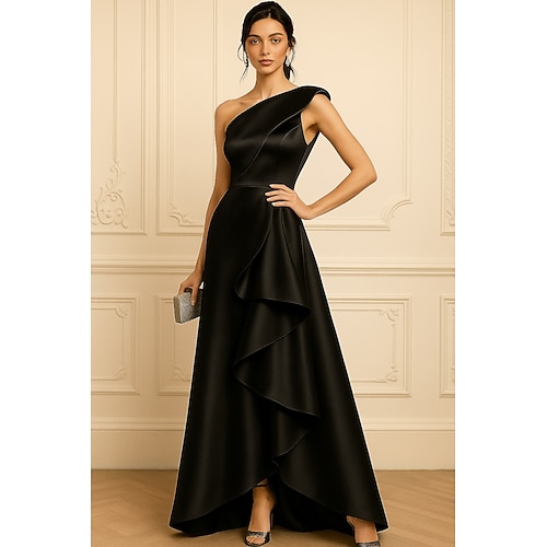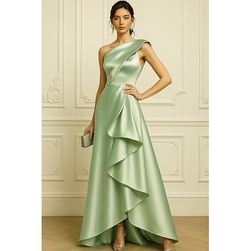 Linea ad A Lunghezza al pavimento Abito da Sera Da principessa Abito formale Elegante Senza Maniche Monospalla Matrimonio Formale Tasca Raso con Arricciato Volant