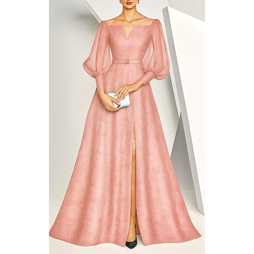 Linea ad A Lunghezza al pavimento Abito da Sera Abito formale Elegante Spacco Alto Manica Lunga Scollo a V Matrimonio Formale Chiffon con Spacco