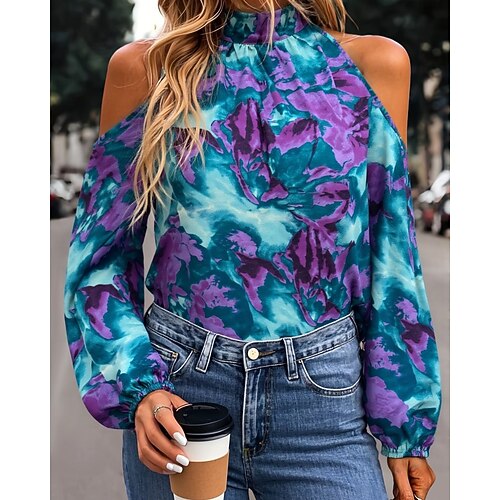 Per donna Maglietta Stampato A Strati Grafico Geometrico Elegante Vintage Classico Manica Lunga Collo Alto Collo asimmetrico Top Regolari Quotidiano Blu Nero Rosa Viola Verde Primavera Autunno Inverno