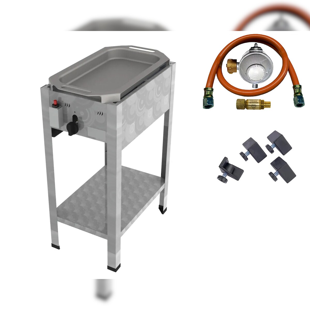 ChattenGlut ChattenTec Professional doppelwandiger Gastrobräter 1-flammig Standgerät 4 kW, Flüssiggas 340x530x830 mm mit Gewerberegler und Pfanne