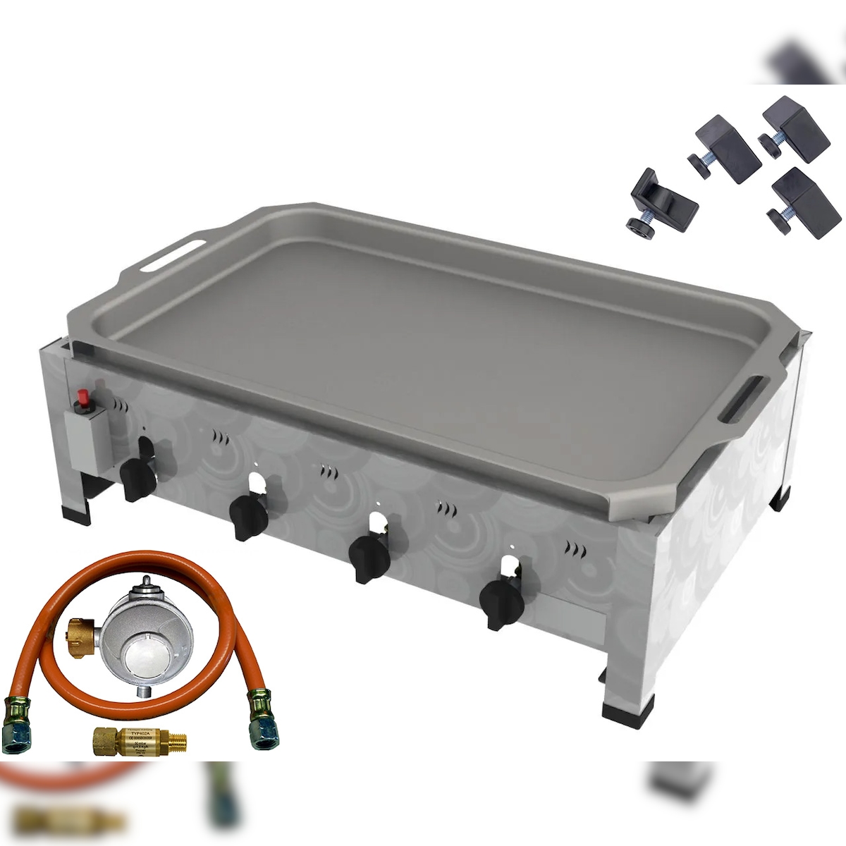 ChattenGlut ChattenTec Professional doppelwandiger Gastrobräter 4-flammig Tischgerät 16 kW, Flüssiggas 815x530x280 mm mit Gewerberegler und Pfanne