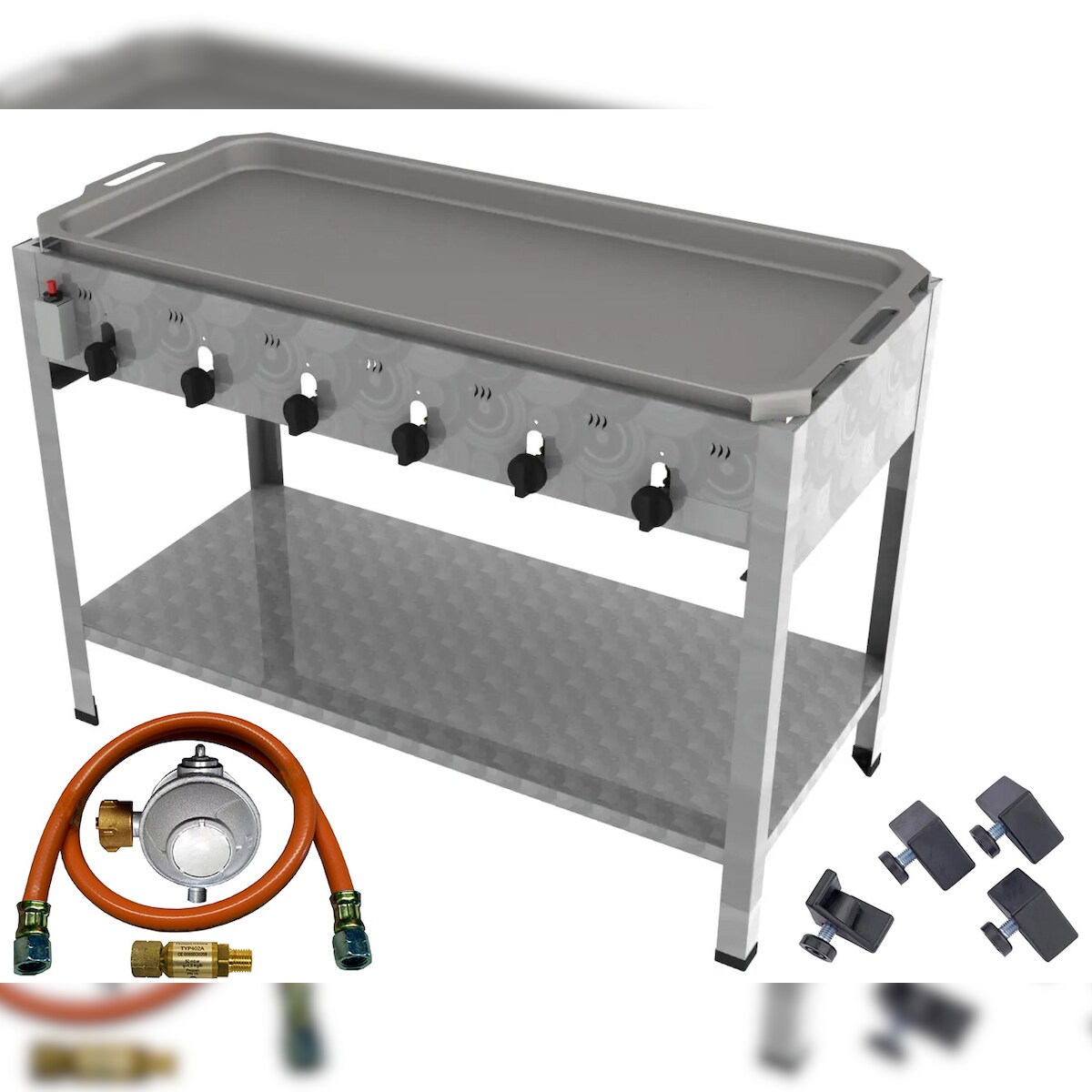 ChattenGlut ChattenTec Professional doppelwandiger Gastrobräter 6-flammig Standgerät 24 kW, Flüssiggas 1145x530x830 mm mit Gewerberegler und Pfanne