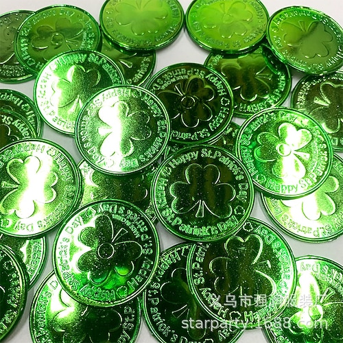 60 monete per il giorno di San Patrizio, monete di plastica a forma di trifoglio verde e oro, monete portafortuna a forma di folletto per bomboniere, decorazioni da tavola, articoli per feste
