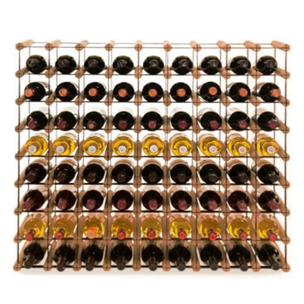 PROREGAL Modulares Weinregal VINOTECA MOD METAL | HxBxT 82,5x92,5x24,5cm | 9x8 Flaschen | Massives Kiefernholz | Braun geölt | Flaschenregal