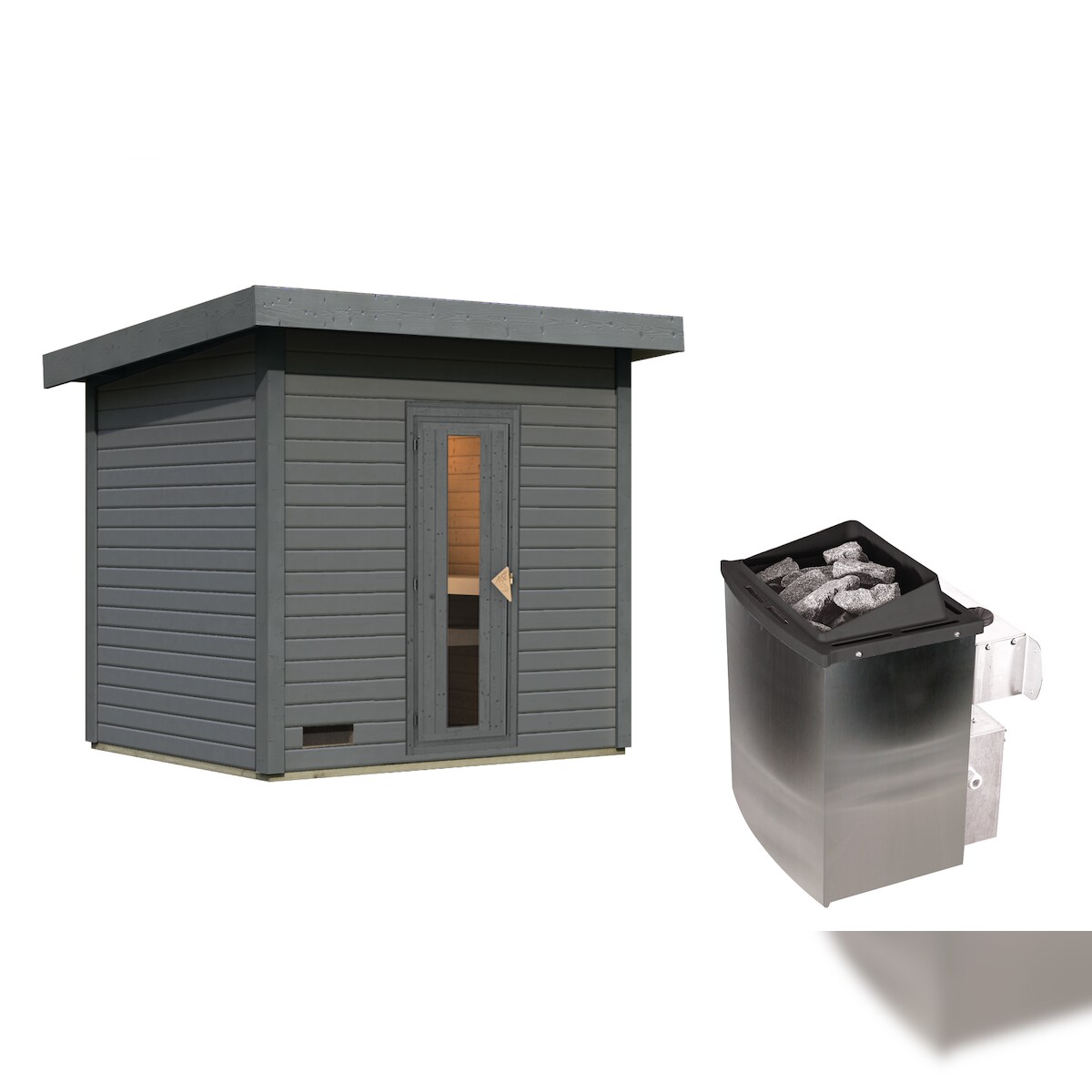 Karibu Saunahaus 38mm Melo 3 Ofen 9 kW integr. Strg terragrau