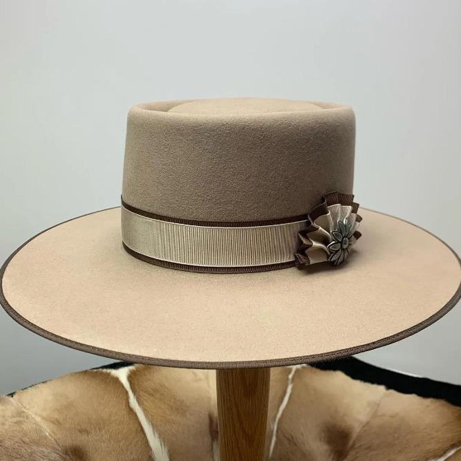 European And American Fashion Pork Style Pure Wool Felt Hat, Webbing Decorative Wool Top Hat 58-60cm black