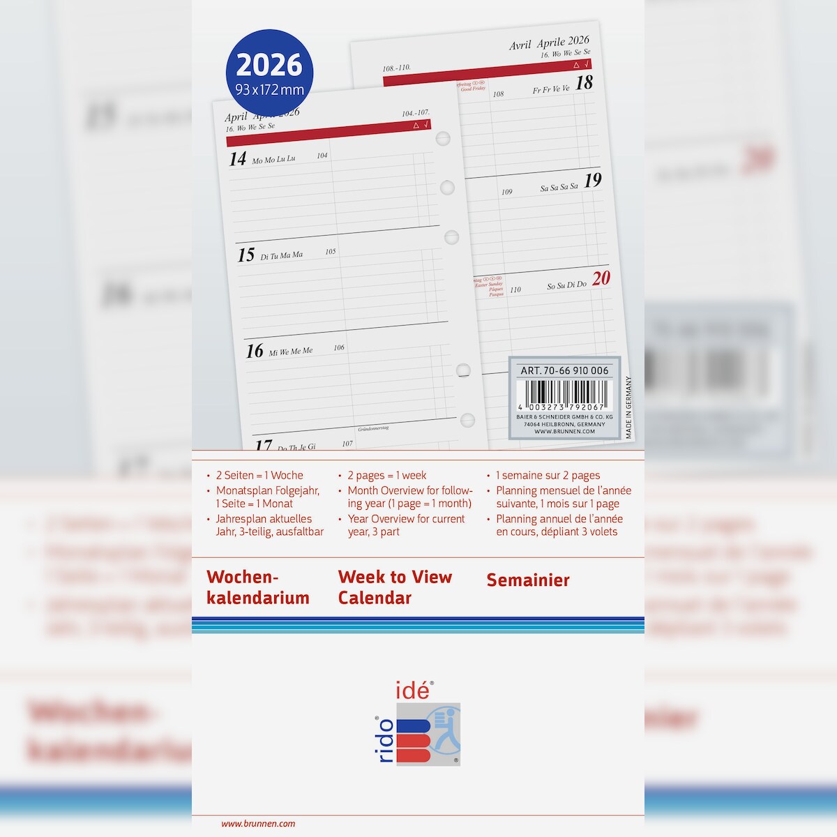 rido® idé® 70-66 910 006 Kalendarium 2026 - Timing 2, Einlage Wochenplaner - 1 Woche / 2 Seiten, 9,3 x 17,2 cm