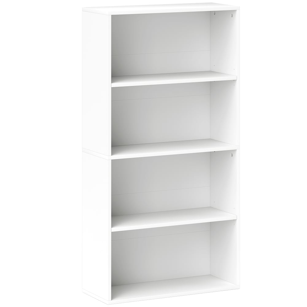 Mobile libreria a 4 ripiani con 2 scaffali flessibili in legno bianco