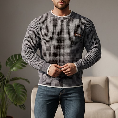 Per uomo Maglione Maglione a maglia A Coste Maglia Top Regolari Lavorato a maglia Semplice Girocollo Moda Essenziale Vacanza Abbigliamento quotidiano Abbigliamento Autunno Inverno Blu marino Marrone