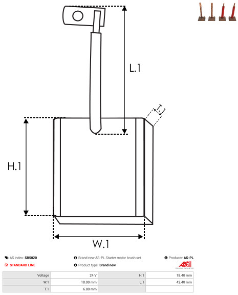 AS-PL Kohlebürste, Starter SB5020 Universal 24V für MITSUBISHI ME700140 M648C26371
