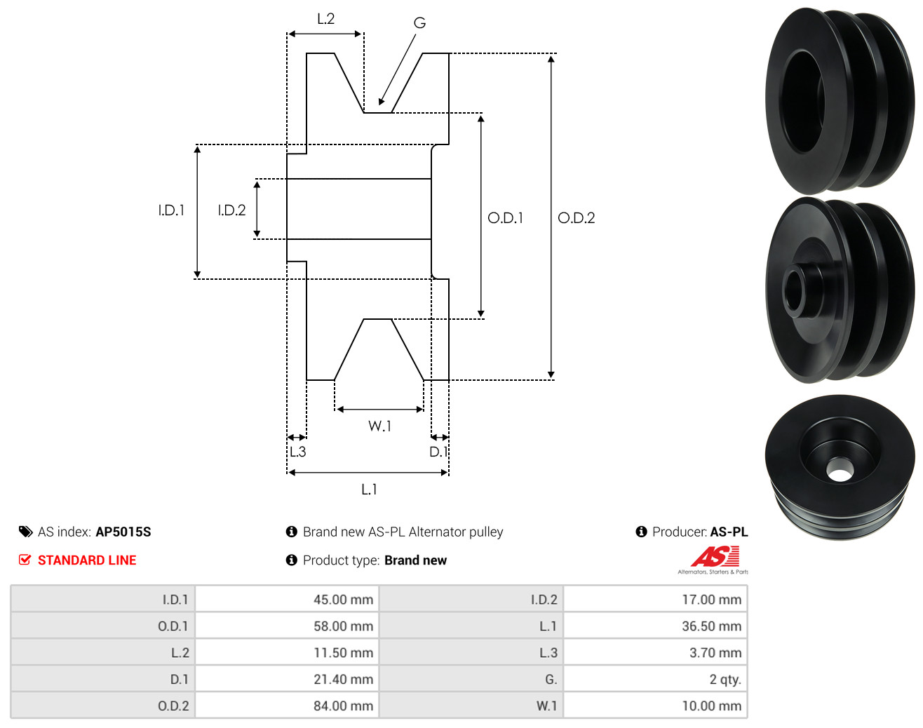 AS-PL Riemenscheibe, Generator AP5015S Universal für MITSUBISHI ME701350 A629X50270