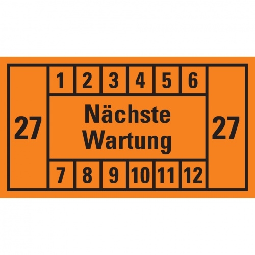 Dreifke® Prüfplakette Nächste Wartung 27, orange, Dokumentenfolie, 45x25mm, 12 St/Bogen