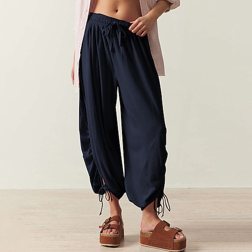Per donna Pantaloncini in cotone e lino Pantaloncini ispirati al lino Shorts Pantaloncini Estivi Vacanza Moda Casual Corto Misura del girovita medio Coulisse Tasca Comodità Morbido Traspirante