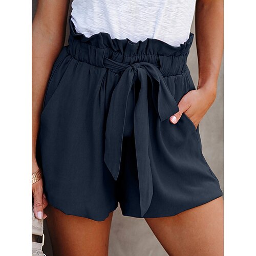 Per donna Pantaloncini ispirati al lino Shorts Pantaloni Eleganti Streetwear Casual Corto Naturale Semplice Volant Elastico in vita Comodo Traspirabilità All'aperto All'aperto Spiaggia Uscire Rosso
